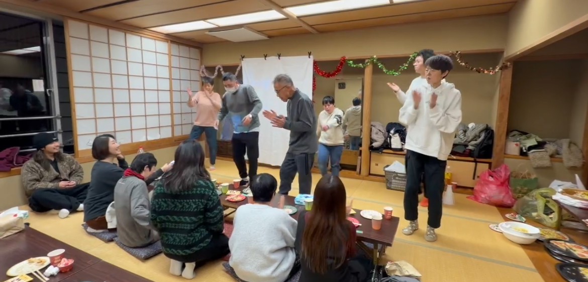 地域交流センターの和室をお借りして、クリスマス会と忘年会を行いました。